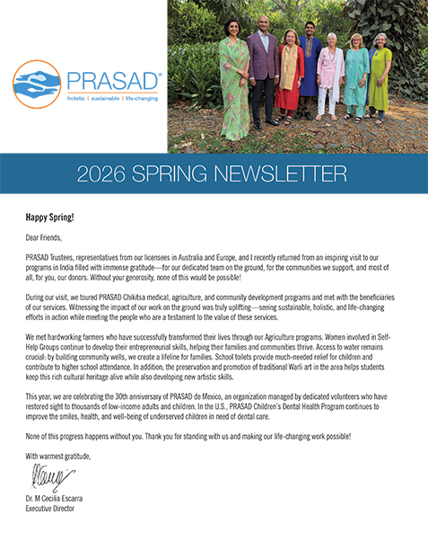 PRASAD Trustees, representatives from our licensees in Australia and Europe, and I recently returned from an inspiring visit to our programs in India filled with immense gratitude—for our dedicated team on the ground, for the communities we support, and most of all, for you, our donors. Without your generosity, none of this would be possible!